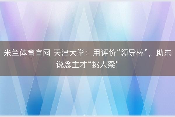 米兰体育官网 天津大学:用评价“领导棒”,助东说念主才“挑大梁”