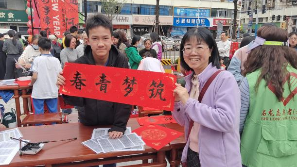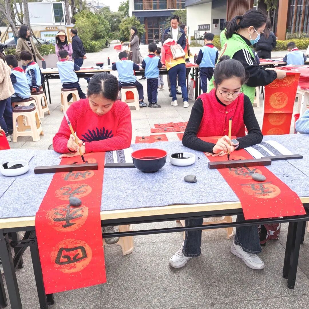 在非遗传承的阵脚上,东莞学子一样留住了活跃的身影。可园中学和石龙镇实验小学的同学们积极干与非遗文化实实践为,老街巷陌里,他们奴婢醒狮跃动的步履,体验“百狮巡游贺新岁”的漂泊;商铺门前,他们随着憨厚傅学作念醒狮头、敲响新昌饱读;走进社区,他们为长辈们送去新春道喜。黄江镇长龙小学书道小组的同学们,则带着翰墨纸砚“闯”进黄牛埔好意思术馆,为环卫工东说念主和临近市民挥墨送福。在一招一式的学习和互动里,同学们不仅读懂了传统文化的魔力,感受到了传统风俗中流淌的情面味。