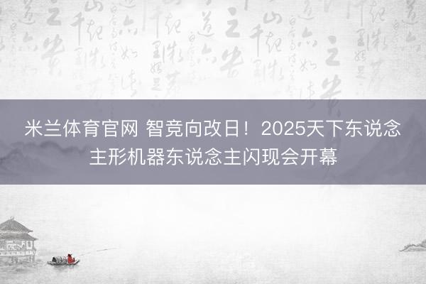 米兰体育官网 智竞向改日!2025天下东说念主形机器东说念主闪现会开幕