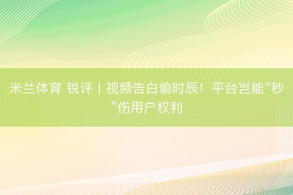米兰体育 锐评丨视频告白偷时辰!平台岂能“秒”伤用户权利