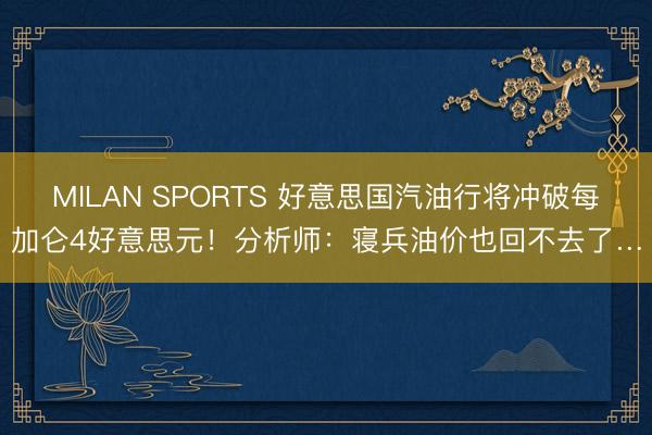MILAN SPORTS 好意思国汽油行将冲破每加仑4好意思元!分析师:寝兵油价也回不去了…
