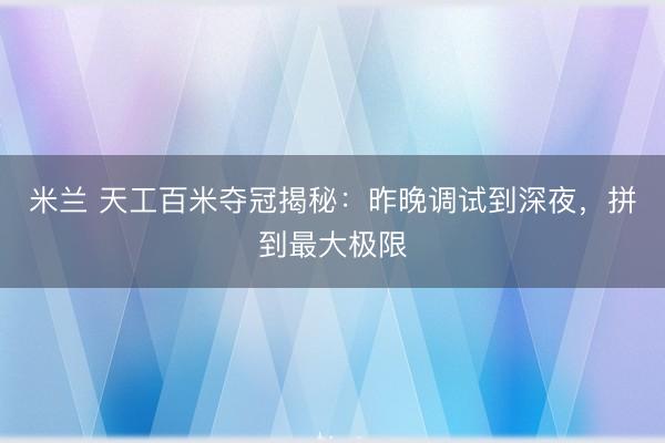 米兰 天工百米夺冠揭秘:昨晚调试到深夜,拼到最大极限