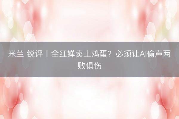 米兰 锐评丨全红婵卖土鸡蛋?必须让AI偷声两败俱伤