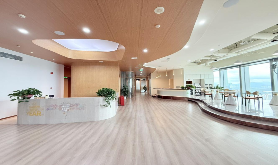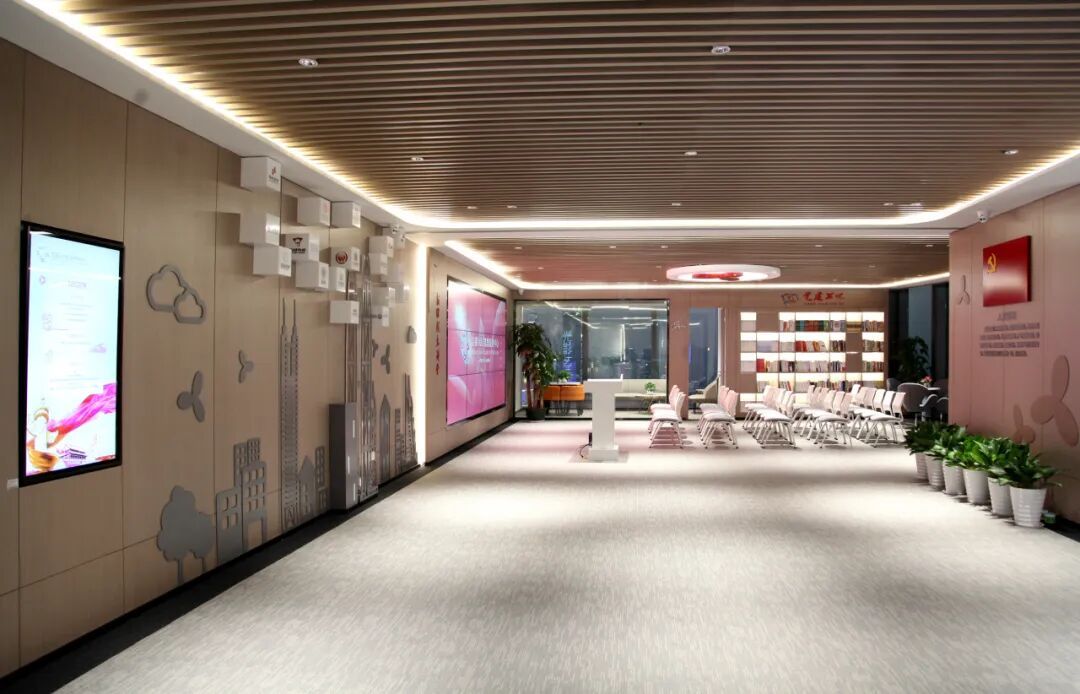 同期,产业社区在京基100大厦44楼打造了深圳市最高的云霄党群工作中心,成为了楼内白领称心来、待得住、感到暖的“会客厅”。