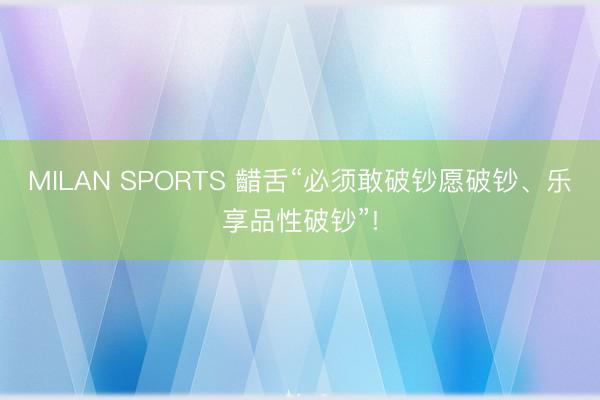 MILAN SPORTS 齰舌“必须敢破钞愿破钞、乐享品性破钞”!