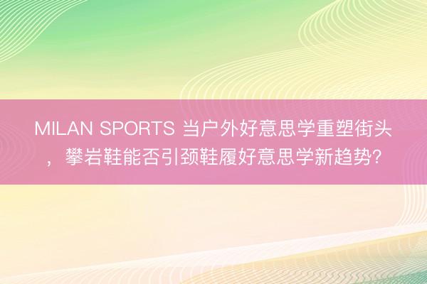 MILAN SPORTS 当户外好意思学重塑街头,攀岩鞋能否引颈鞋履好意思学新趋势?