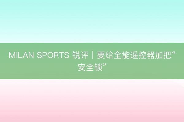 MILAN SPORTS 锐评|要给全能遥控器加把“安全锁”