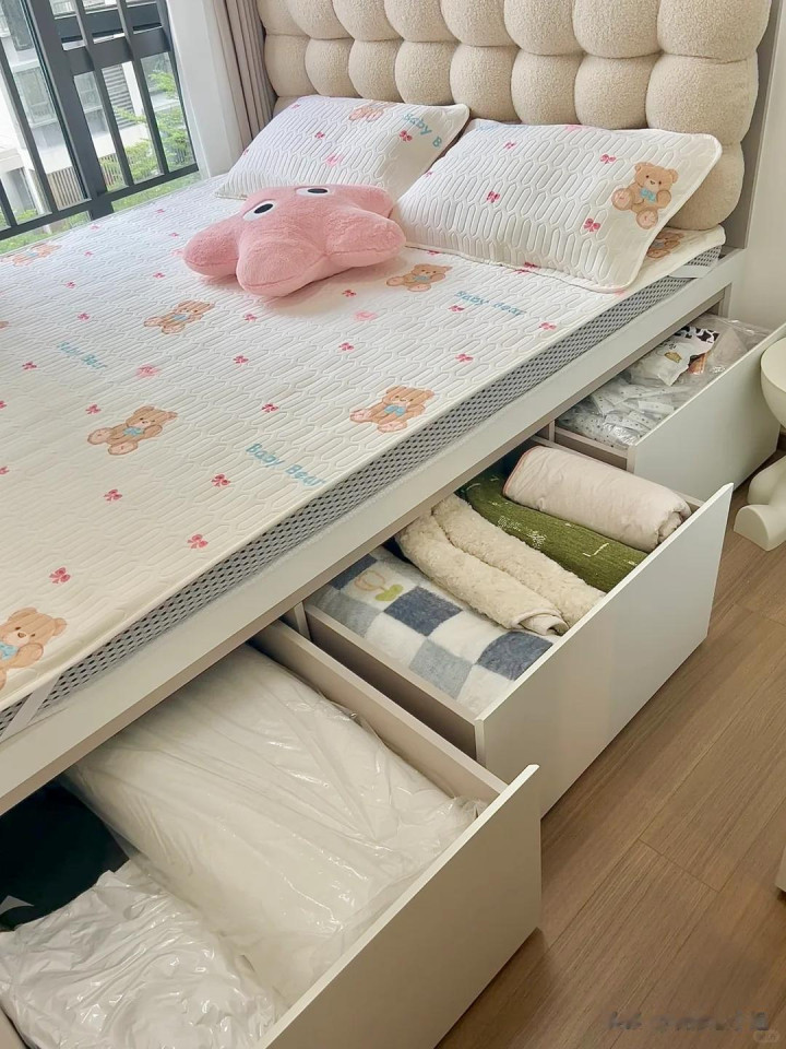 只不外在野心侧卧榻榻米时,提议将储物功能野心为抽拉式的拿取姿色,这样更故意于储物功能的使用。