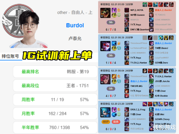{jz:field.toptypename/}IG试训新上王老五骗子份曝光,韩服排行19!