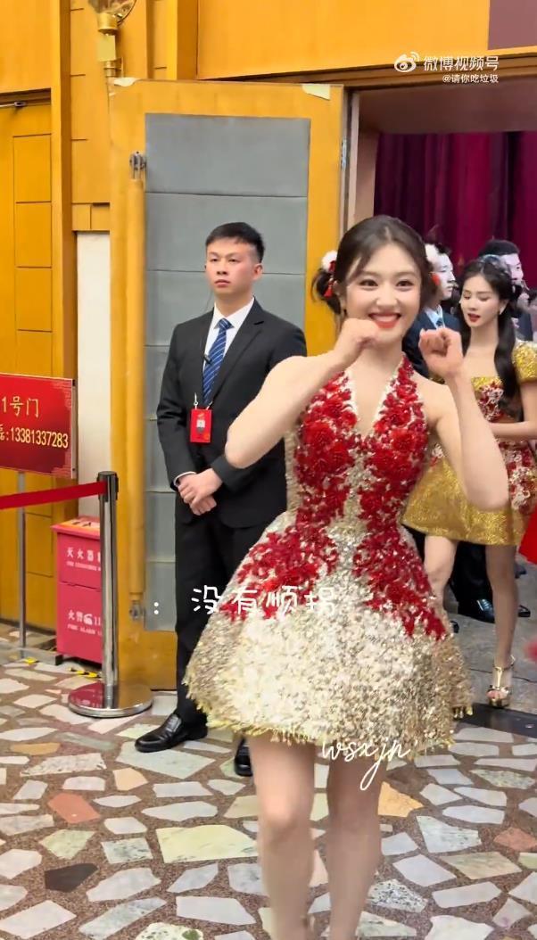 然而,自嘲归自嘲,舞台上的李兰迪关联词交出了一份满分答卷。一袭红色蓬蓬裙配上俏皮双丸子头,活脱脱一个“东谈主间福娃”。从开场站定到《牢记今宵》旋律响起,她全程当作流通、精确到位,甜好意思的笑脸和踏实的进展被不雅众盛赞为“甜度爆表的年画娃娃”,与后台阿谁缅想“顺拐”的她造成昭着对比。