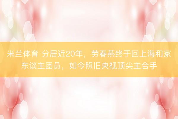 米兰体育 分居近20年,劳春燕终于回上海和家东谈主团员,如今照旧央视顶尖主合手