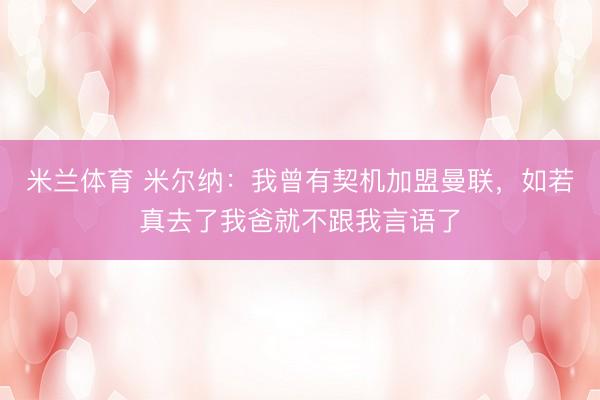 米兰体育 米尔纳:我曾有契机加盟曼联,如若真去了我爸就不跟我言语了