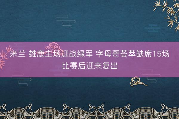 米兰 雄鹿主场迎战绿军 字母哥荟萃缺席15场比赛后迎来复出