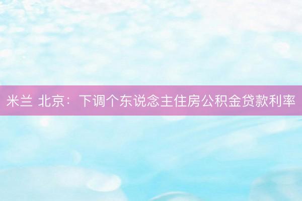 米兰 北京:下调个东说念主住房公积金贷款利率