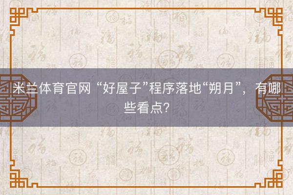 米兰体育官网 “好屋子”程序落地“朔月”,有哪些看点?